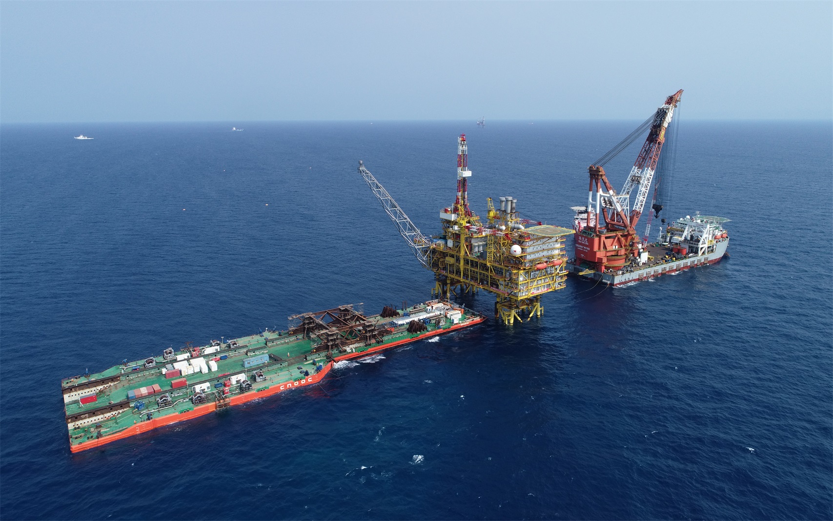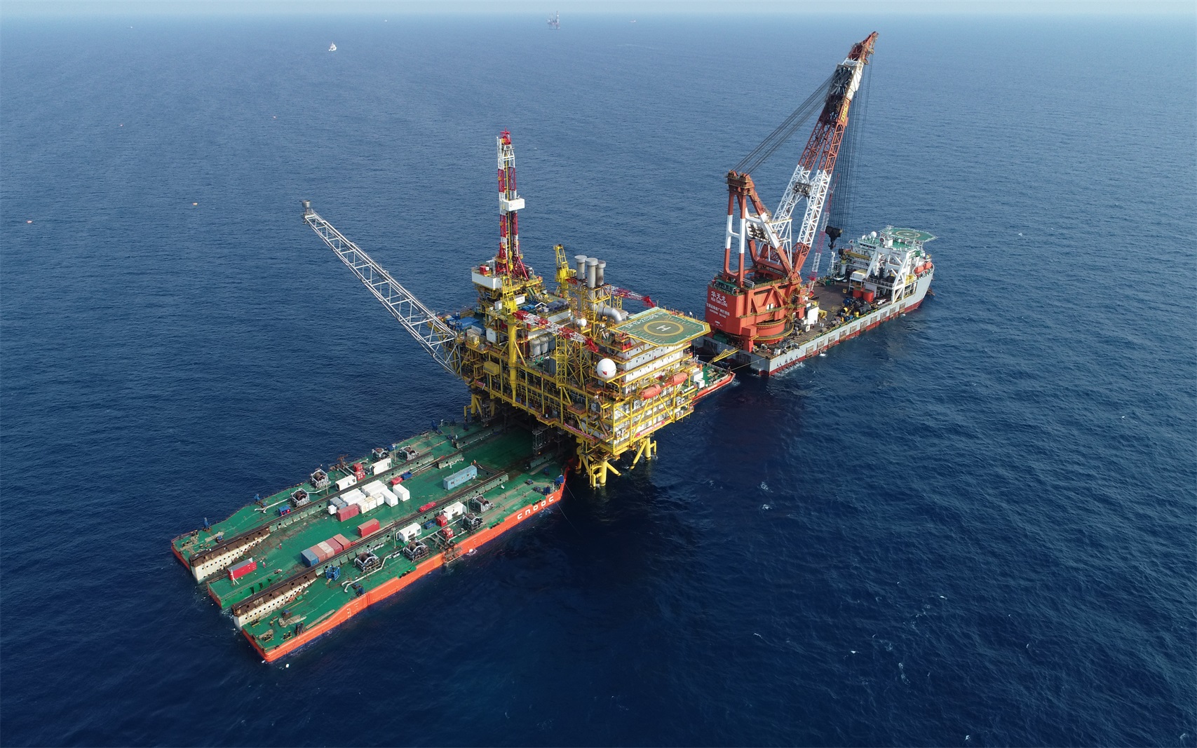 項目簡介:東方13-2CEPB平臺位于海南省東方市以西約132km的南海西部海域,水深約64-98m。海油工程工作范圍包括3座導管架、兩座組塊的詳細設計、采辦、陸地建造、陸地調試與海上調試;3座平臺裝船運輸、海上安裝;4條共計224公里海管鋪設、膨脹彎安裝、預調試;2條共計27公里海纜鋪設工作。